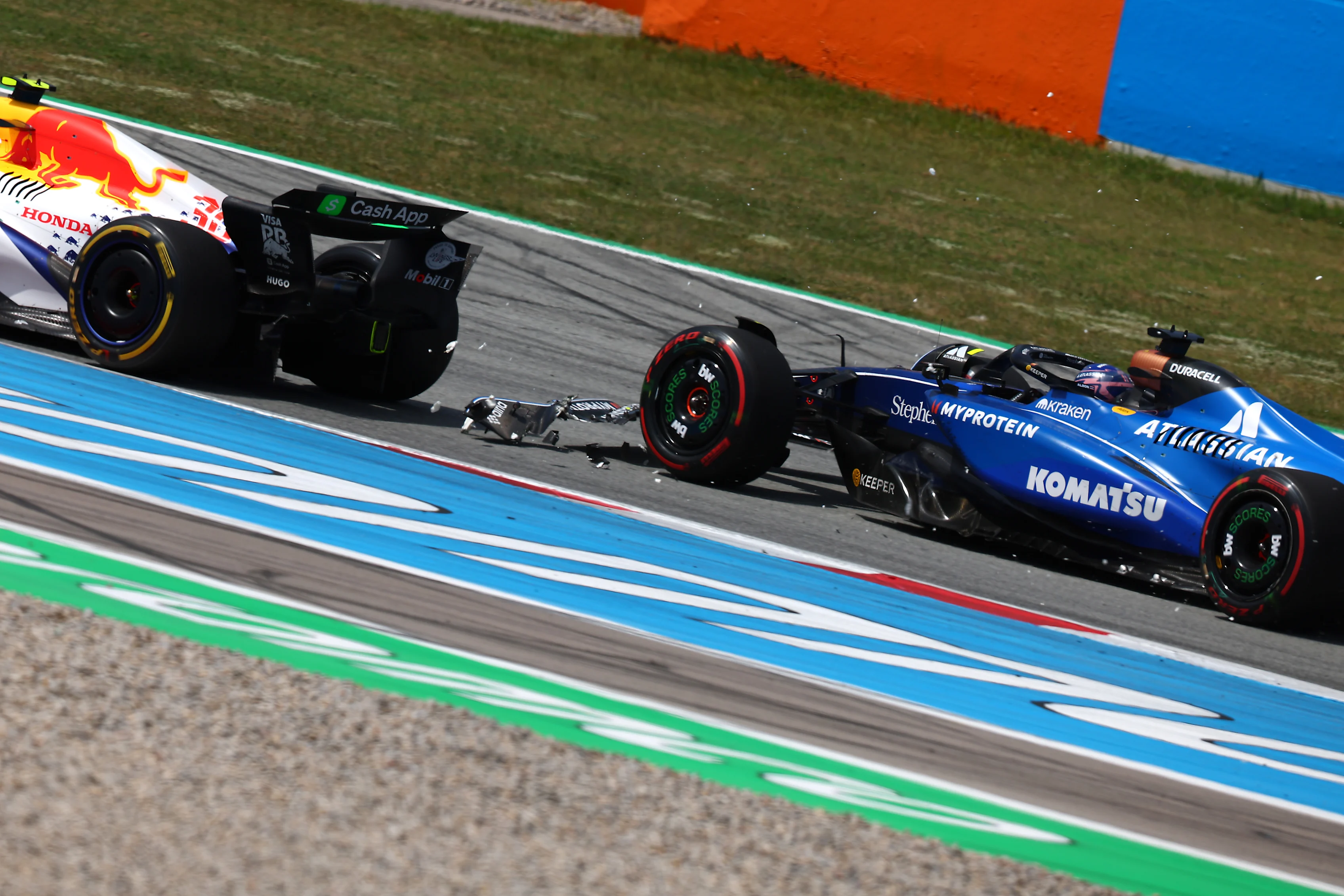 Another broken wing was the result – the team’s third of the day – and they opted to retire Albon’s car after he had served a 10-second time penalty for leaving the track and gaining an advantage when fighting with Lawson.