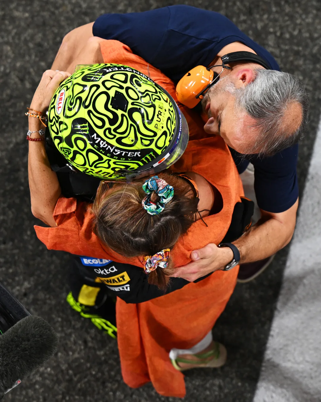 Norris is buzzing. Even if he's soaked head to toe in a combination of sweat and champagne, there's nothing that is going to harsh his buzz. This is his moment. The one he's worked all his life for.