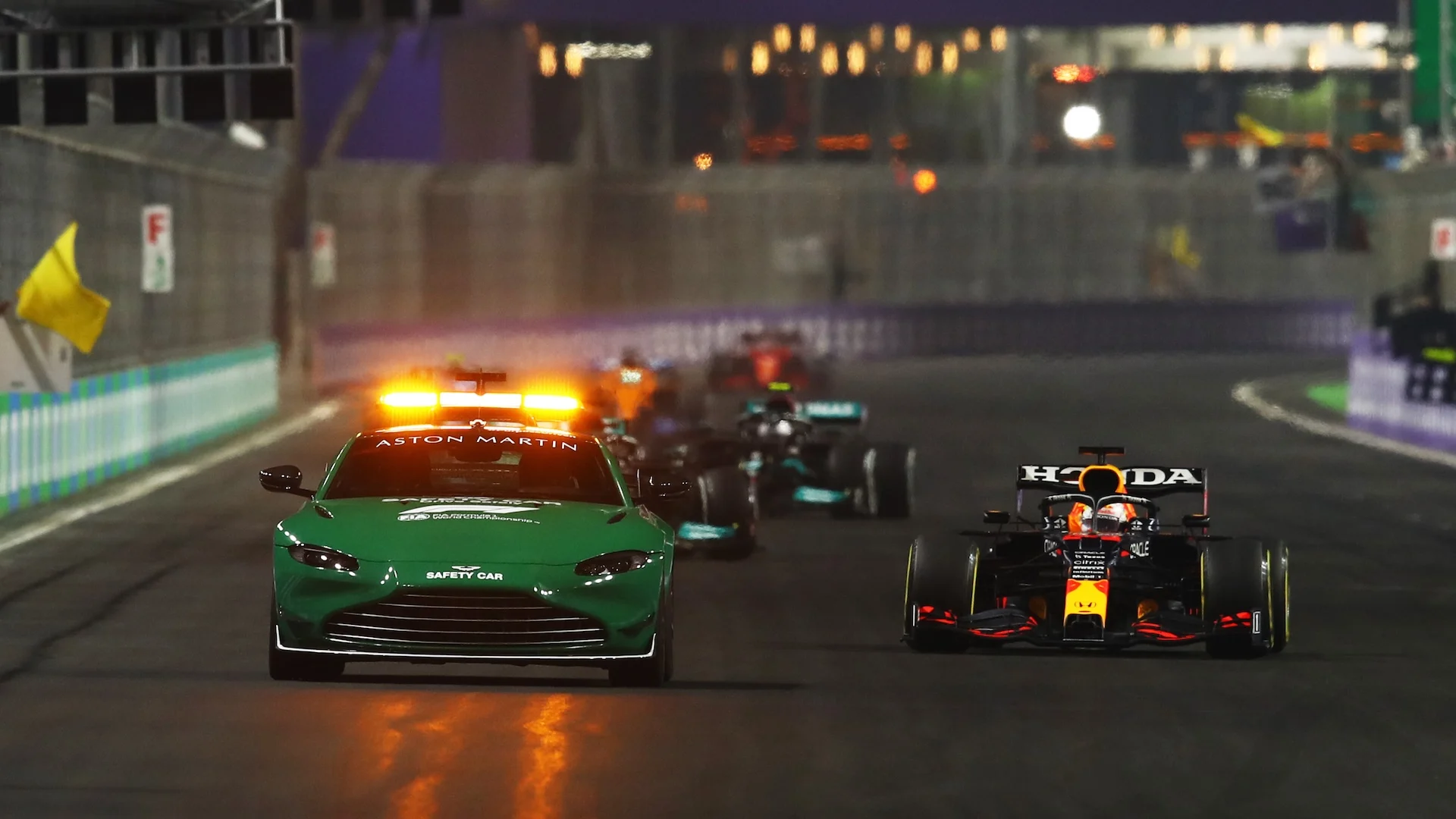 As the Safety Car was deployed, Bottas held back the field so Mercedes could double-stack both cars and switched from the medium Pirellis to the hards. But Red Bull did likewise only with Perez, leaving Verstappen in the lead.