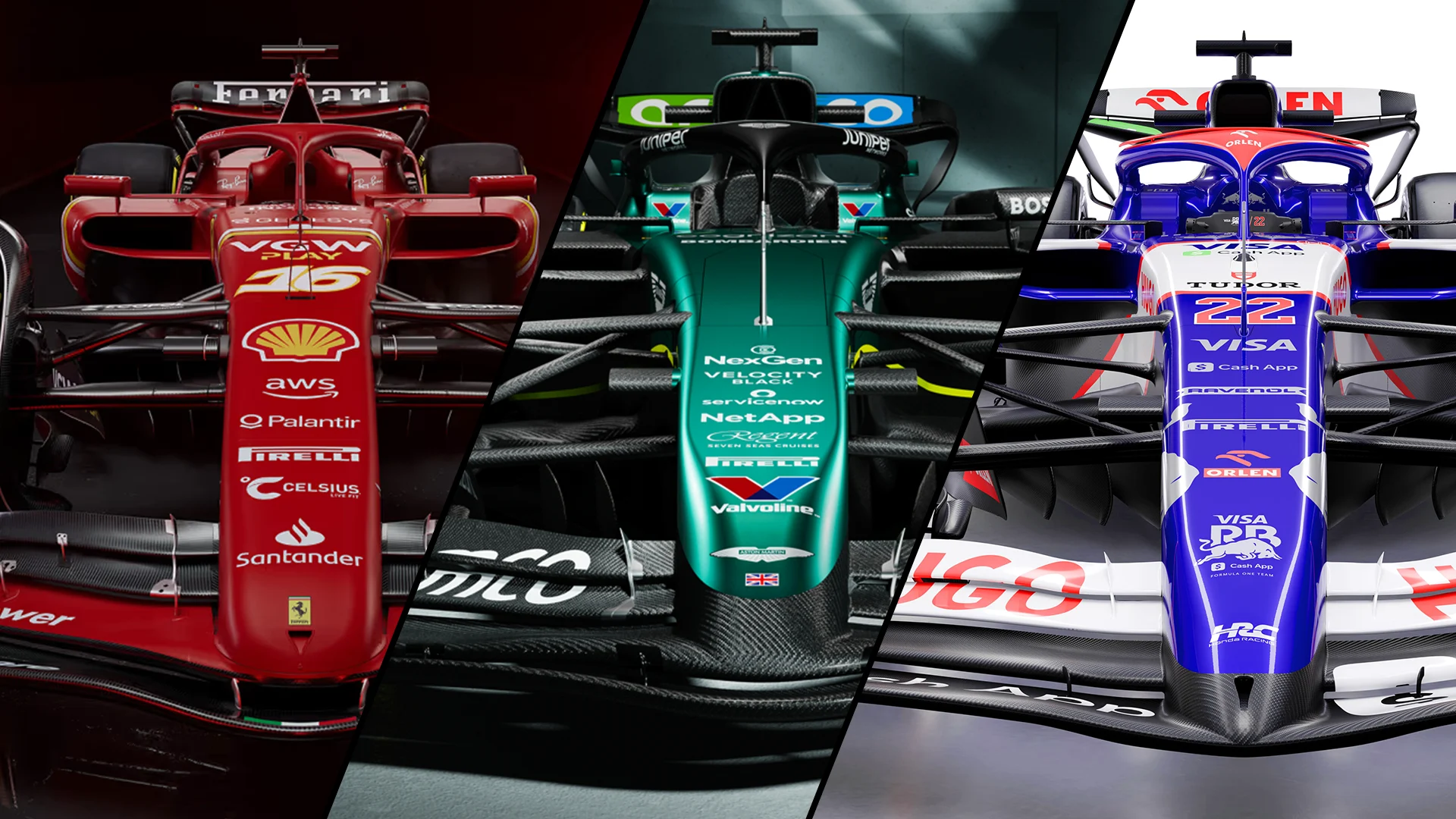From the papaya orange McLaren to the black-and-silver Mercedes, and the classic deep red of Ferrari to the striking green-dominated approach from Kick Sauber, there’s a wide variety of designs in this year’s field.