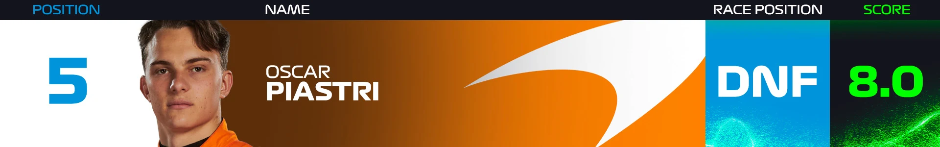 A first lap incident with Carlos Sainz, that left him stranded on the side of the track, was a painful way for Piastri to cap what was an excellent weekend, and first half of his rookie season. He even managed to lead his first laps in Formula 1 in Saturday's Sprint.