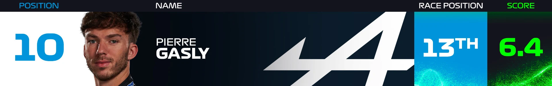 He qualified seventh and, while he did not have the pace to make much of an impression on the podium, he was still at his cunning best. He did incredibly well to keep Lewis Hamilton behind and pulled off a late overtake on Tsunoda to take P7. An impressive way to end an impressive year.