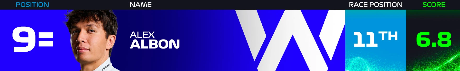 After contact with Magnussen left his Williams with front wing damage, Alex Albon struggled to make his way through the pack. However, the Thai driver still made some moves in a tightly-packed midfield battle and only just missed out on a point in P11.