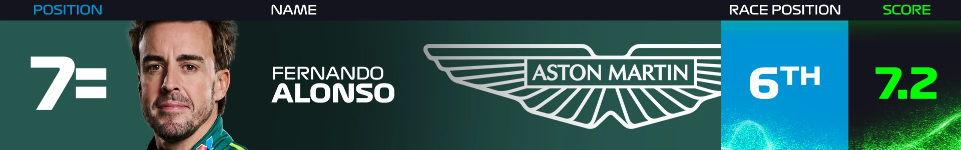 Besides taking P1 in the largely meaningless Free Practice 2 running, this was a weekend where Alonso once again had to watch on as Red Bull, Mercedes and McLaren carved up the spoils at the front of the field. A podium still looks a way off for Aston Martin – but Alonso’s ability to consistently wrestle results out of his car remains impressive.