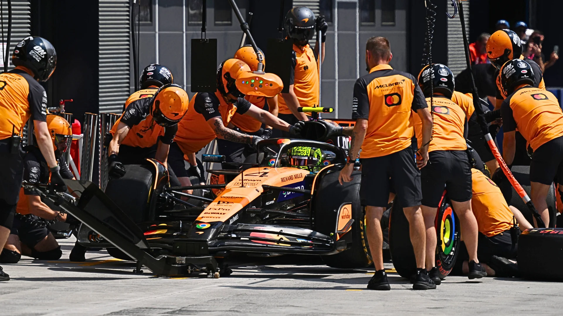 McLaren looked bemused rather than dejected in the aftermath. They were comfortably the quickest cars over a single lap, and look to have the long run pace to match – but overtaking is difficult here, and their internecine strategic battle now has to cater for an extra, scarlet variable.