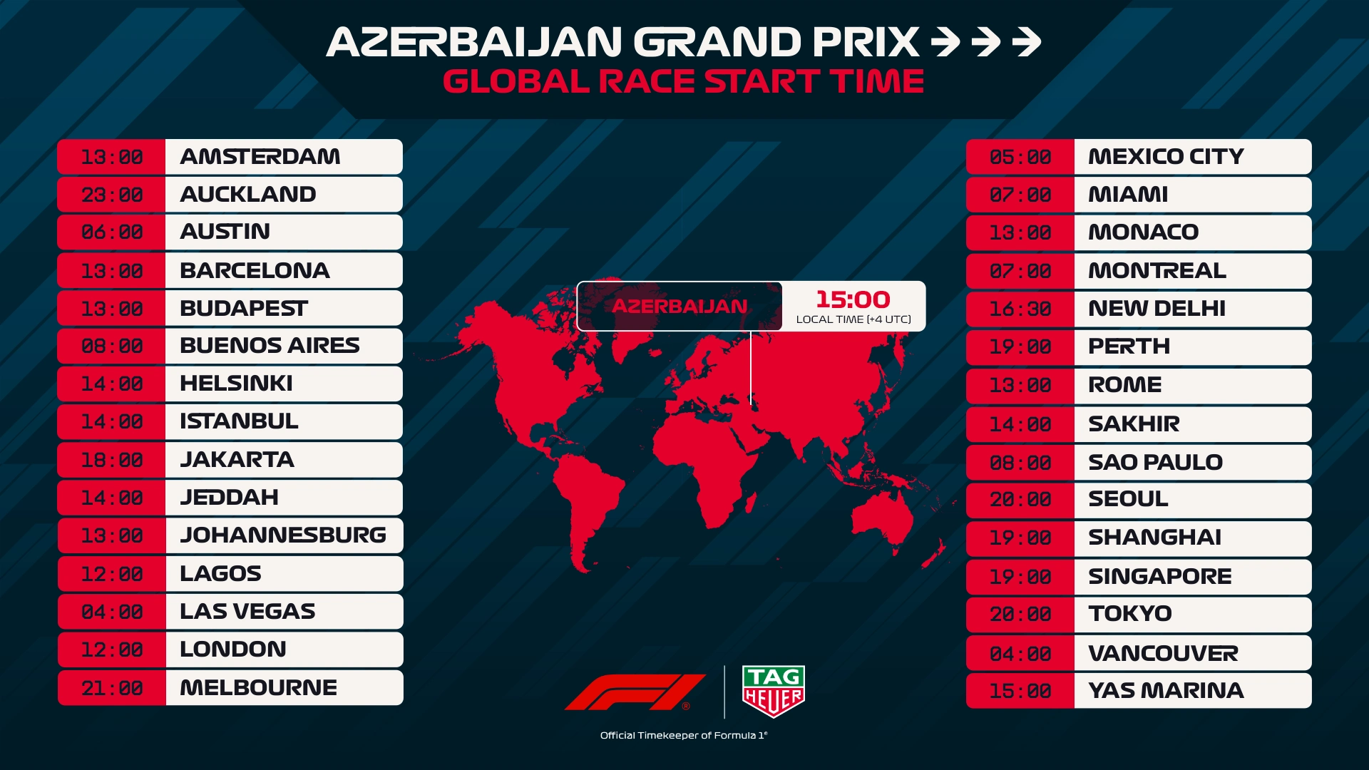 Formula 1 moves into its flyaway phase this weekend as the drivers and teams head to Baku for the 2025 Azerbaijan Grand Prix – and here are the global start times for Sunday’s race.